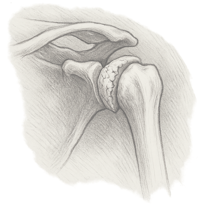 La tête humérale est l’extrémité supérieure de l’humérus composée d’une partie cartilagineuse qui s’articule avec l’omoplate et d’une autre partie, appelée tubérosités, sur lesquelles s’attachent des tendons très importants pour faire fonctionner l’épaule : la coiffe des rotateurs. La glène, c’est ainsi qu’on appelle la surface articulaire de l’omoplate, s’articule avec la partie cartilagineuse de la tête humérale constituant ainsi l’articulation gléno-humérale.